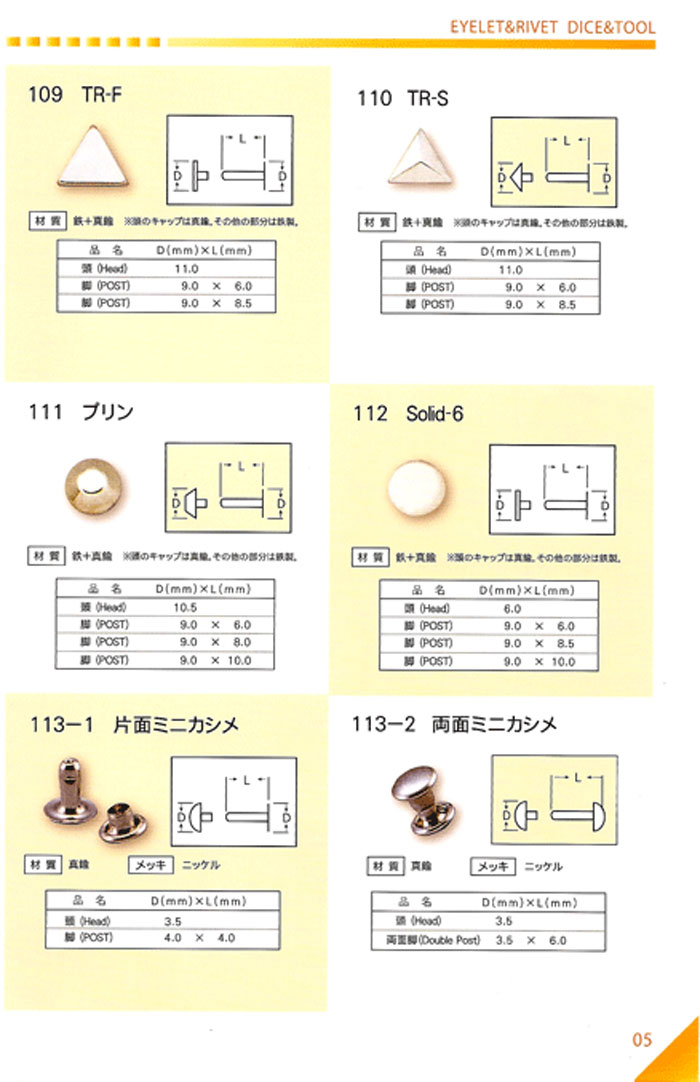 カシメのいろいろ