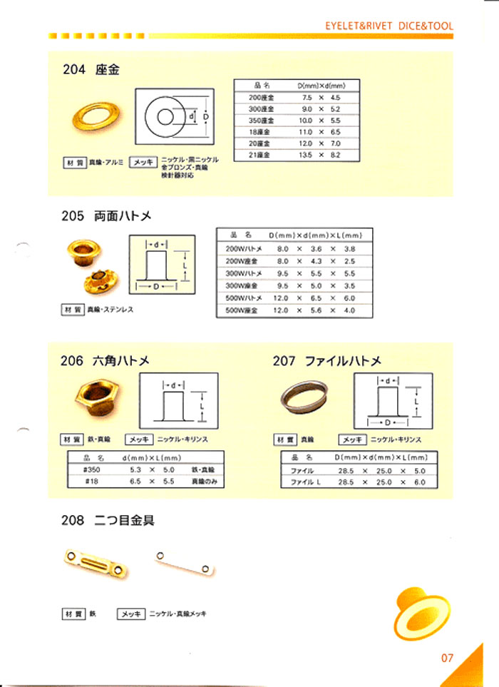 カシメのいろいろ